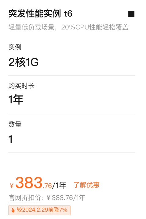 相关服务: 凤阳ECS突发性能t6费用